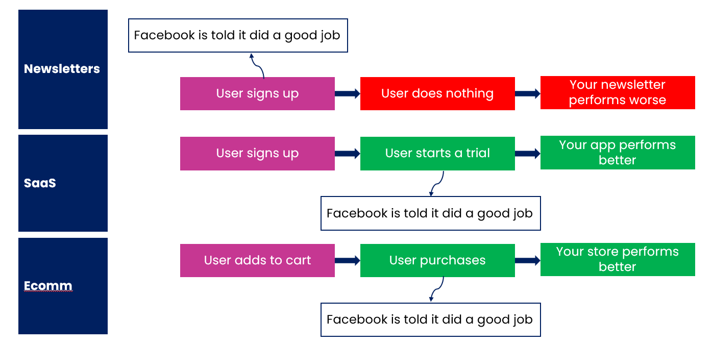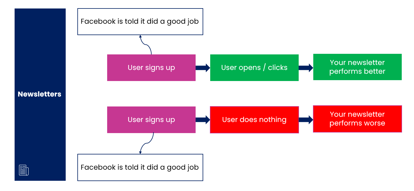 Someone sees your ad → Signs up → You tell Facebook "good job, you got a reader"
