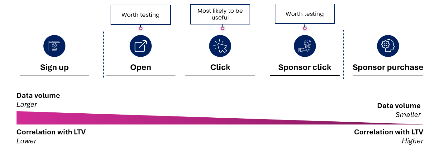 “Is there ANY event down-funnel where I can train Facebook to find better readers, where I still have A LOT of data to pass back to Facebook?”