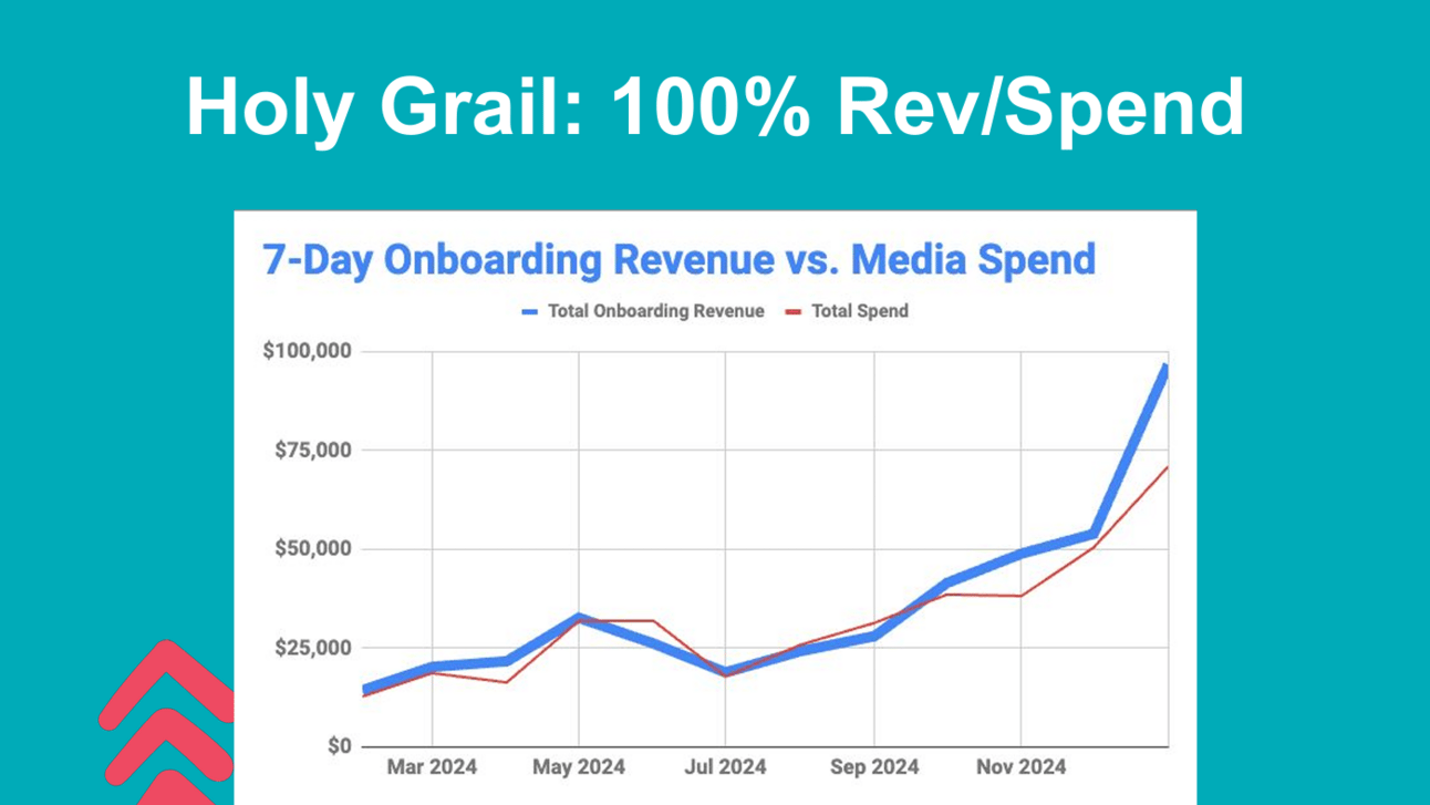 They're spending roughly $70,000 a month on ads and making something close to $100,000 a month in onboarding revenue (eyeballing the chart).